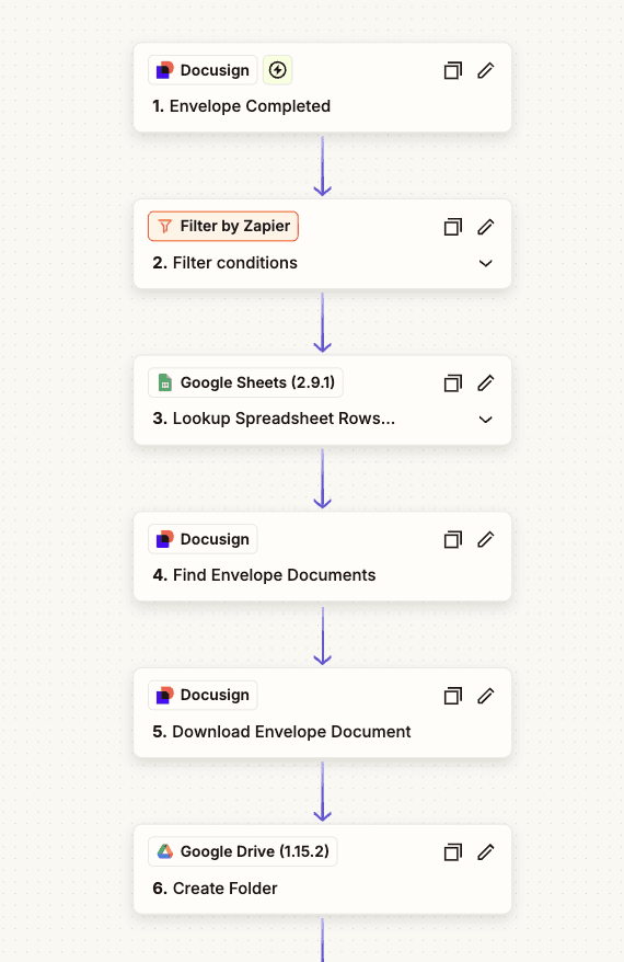Architecture Design: Designed a linear workflow in Zapier, using Pipedrive "Person" and "Deal" data to populate dynamic fields in DocuSign templates.
